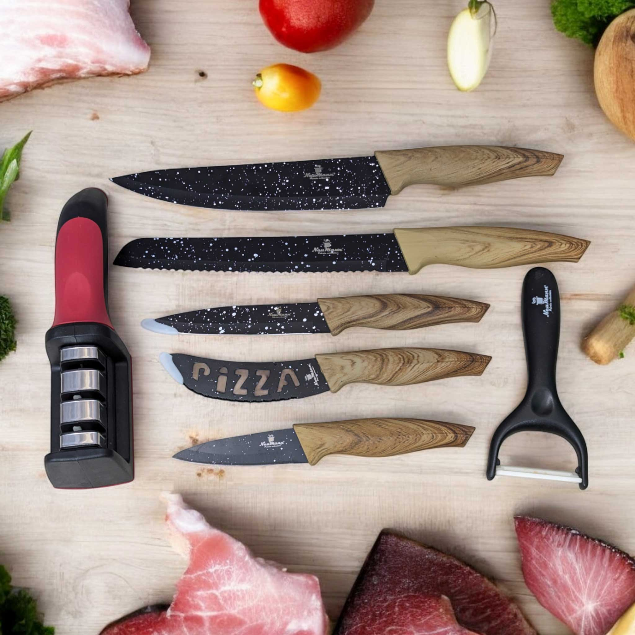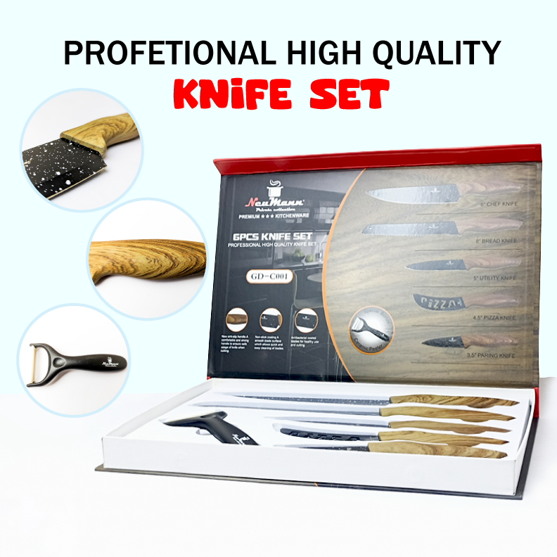 Neumann 6 Pieces Knife Set | High Quality Knife Set Non-Stick Coating | কালো সিরামিক কোটিং ছুরি সেট এর সাথে knife sharpener(ফ্রি)